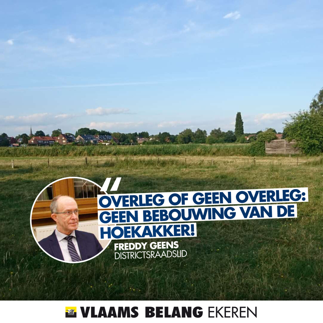 Het gebied Hoekakker in Ekeren-Donk: nu nog groene weiden in het waterrijke stroomgebied van de Oudelandse Beek, waar echter al sinds 2016 de dreiging van bebouwing met 450 woningen in een combinatie van huizen en woontorens tot 4 verdiepingen hoog boven het hoofd van de omwonenden hangt.